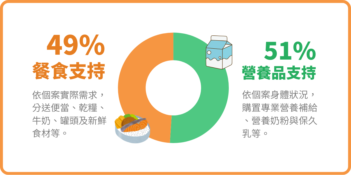 本計畫累計幫助 535 人提供超過 8,000 人次的營養支持