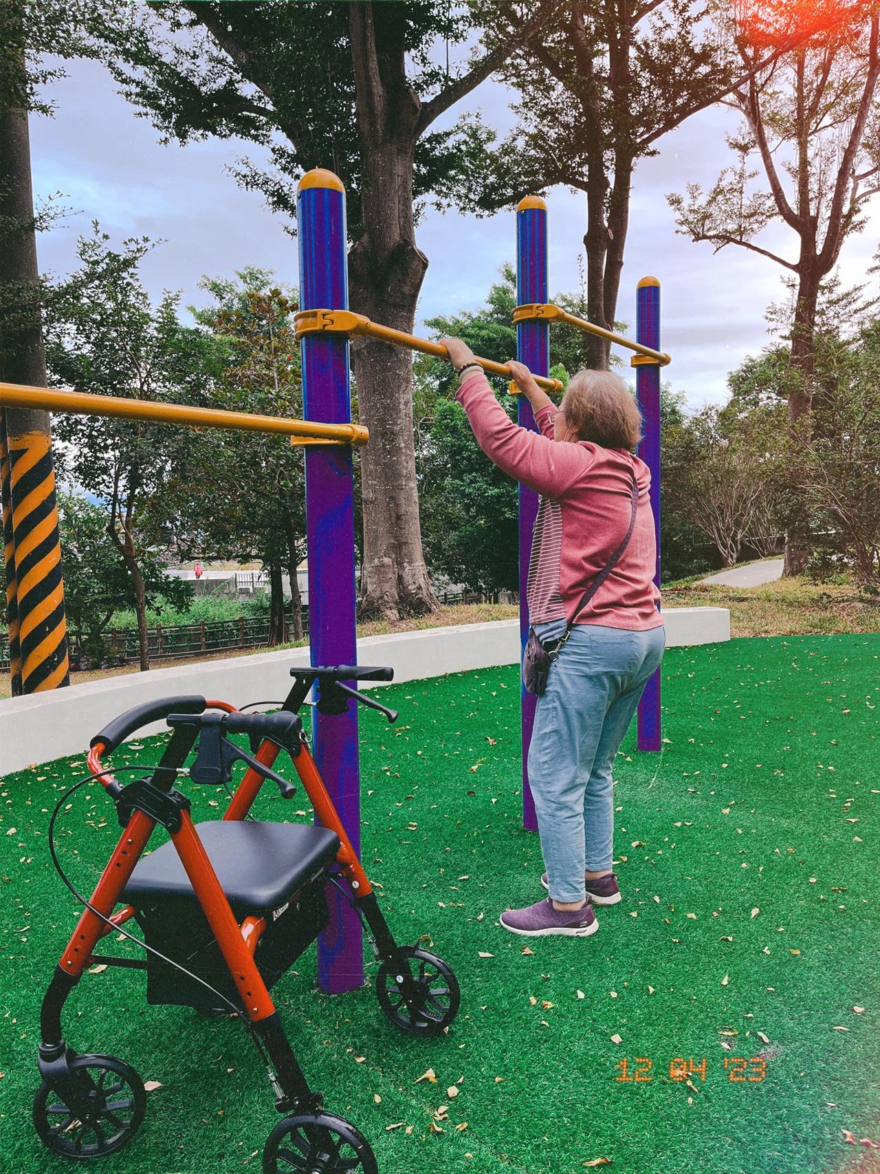 因為第二次中風影響下,阿嬤申請了長期照顧服務,她希望在居服員的陪伴下,能提升活動力、增強肌力 💪把握每一次站起來、邁出腳步的機會。從一開始只能在門口緩慢行走,到後來慢慢能走出家門、走到附近的公園。能踏上小斜坡、跨上階梯、挑戰樓梯,最後,甚至能扶著開始使用,公園裡的戶外運動器材。