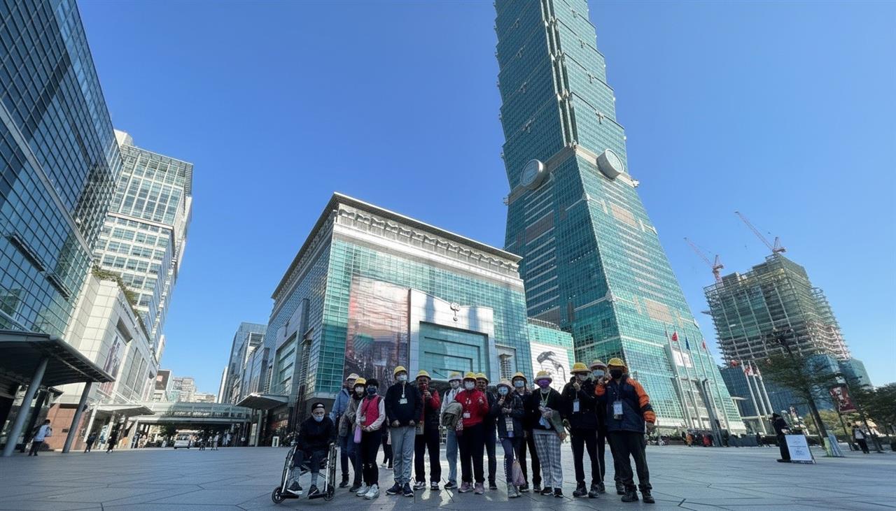 抵達台北101時,學員在大樓下仰望良久,興奮指著建築分享記憶中的畫面。搭乘高速電梯時,部分學員因高度不安,服務人員靜靜陪伴使其適應。當電梯門開啟,城市美景映入眼簾,學員緊張情緒轉為笑容,紛紛拍下照片留念。返程時,有學員輕聲說「原來台北這麼大」,也有平時少言的學員低聲分享「今天真的很開心」。