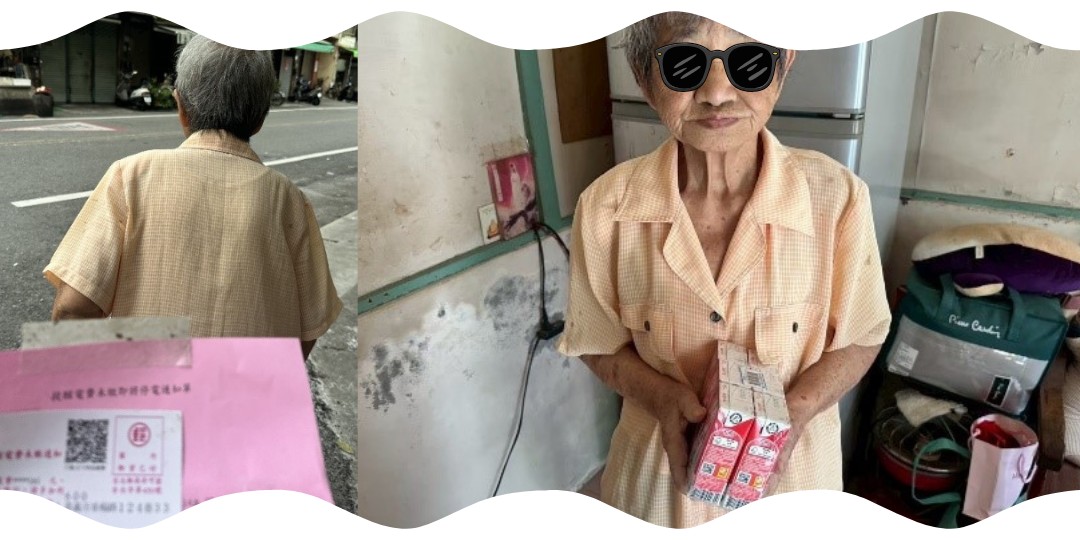 獨居的高齡生活耗盡了黃阿姨的精力,讓她無力處理大門上那張催繳電費的紅單。🔻透過此專案,社工送來補足營養的保久乳,更陪著阿姨步行至郵局領錢、繳清電費。這份專案不只提供溫飽,更在長輩最無助的時刻給予幫助、提供生活的安全感。